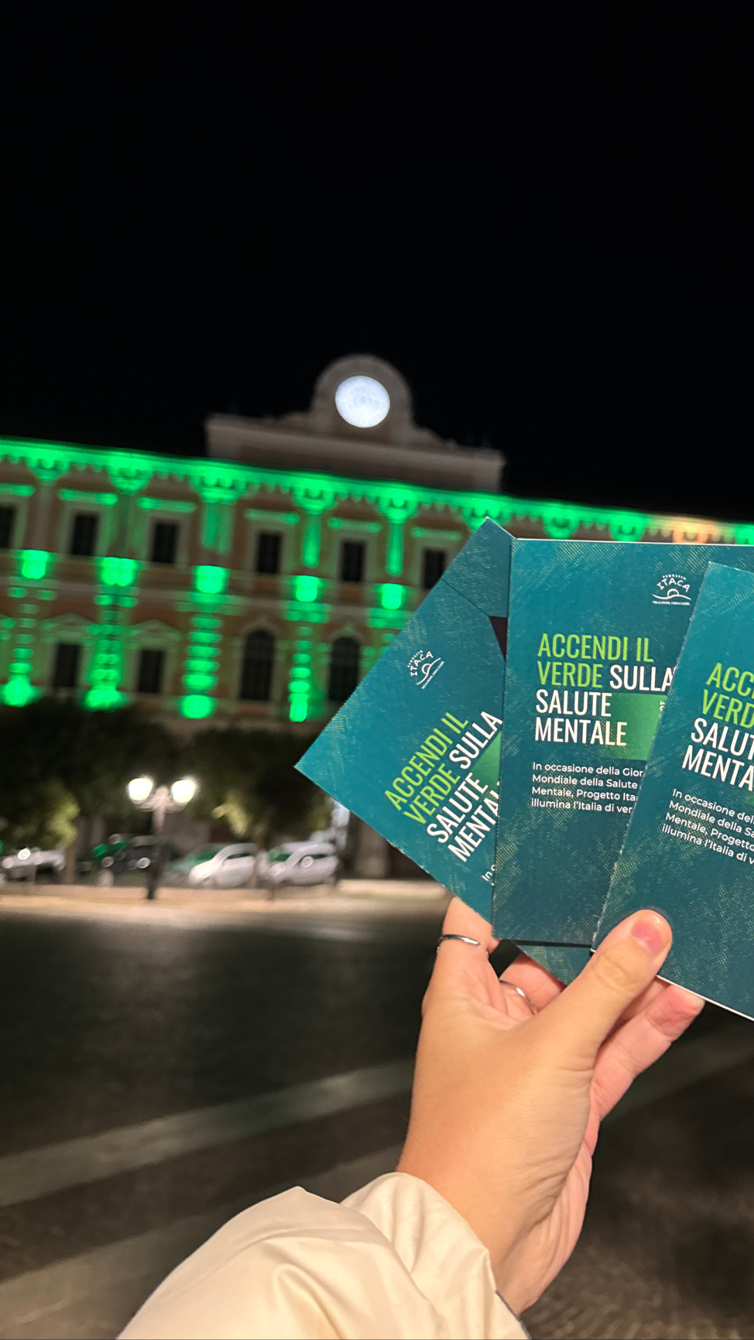 Dalla sera del 9 ottobre e per tutta la giornata del 10, nelle 17 città in cui Progetto Itaca è attiva con le sue sedi locali (Bari, Bergamo, Brescia, Bologna, Campobasso, Catanzaro – Lamezia, Firenze, Genova, Lecce, Milano, Napoli, Padova, Palermo, Parma, Rimini, Roma, Torino), i monumenti e i palazzi delle istituzioni che hanno aderito all’iniziativa si illumineranno di verde, il colore della salute mentale, per accendere la consapevolezza su un tema importante e quanto mai attuale come quello della salute mentale: tra questi, ad esempio, la Mole Antonelliana a Torino, UniCredit Tower e Diamond Tower in Portanuova a Milano, Palazzo del Podestà a Bologna, Palazzo della Loggia a Brescia, Torre Campanaria Palazzo Moroni a Padova, Rocca Malatestiana a Rimini, Fontana Piazza Aldo Moro a Bari, Palazzo del Sedile a Lecce, Castello Svevo-Normanno di Lamezia e molte altre.